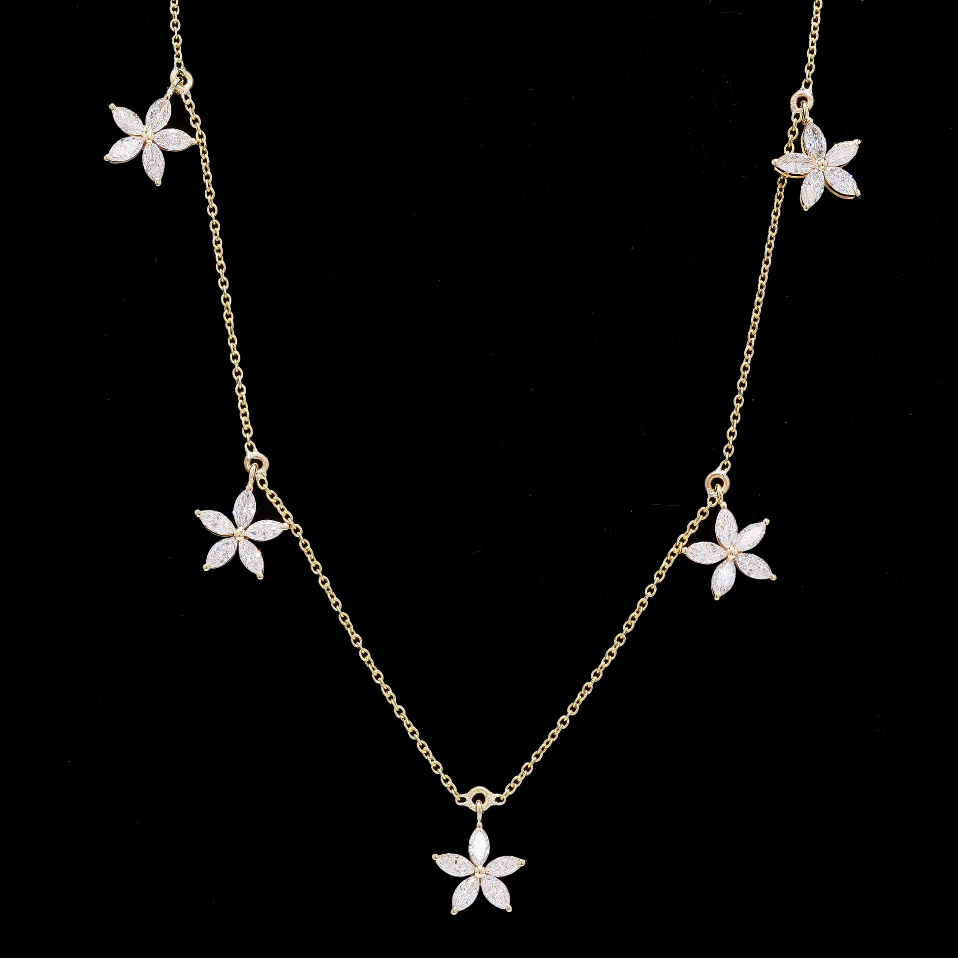 14k Gold Diamond Floral Necklace – Lab-Grown Diamond Chain with 5 Flower Charms (1.60 ct)