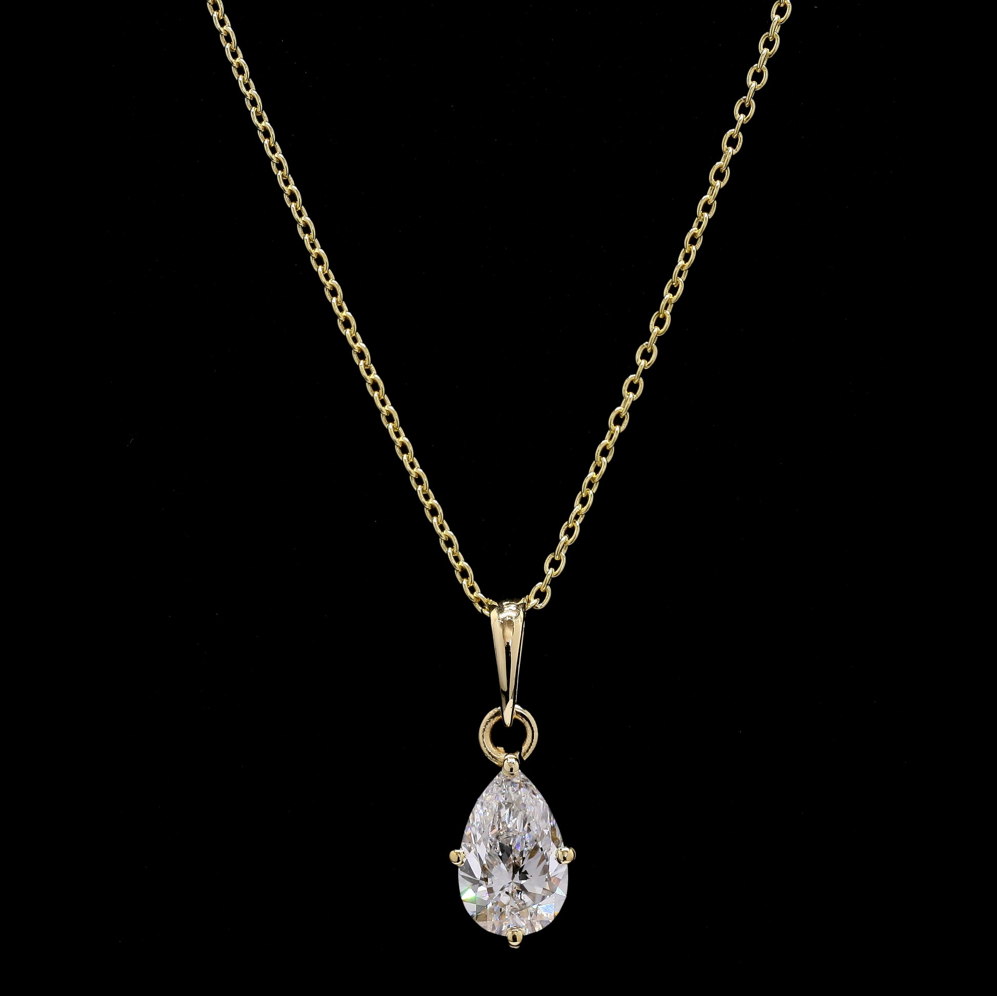 14k Gold Pear Shape Diamond Necklace – Solitaire Pendant with Lab-Grown Diamond (0.90 ct)