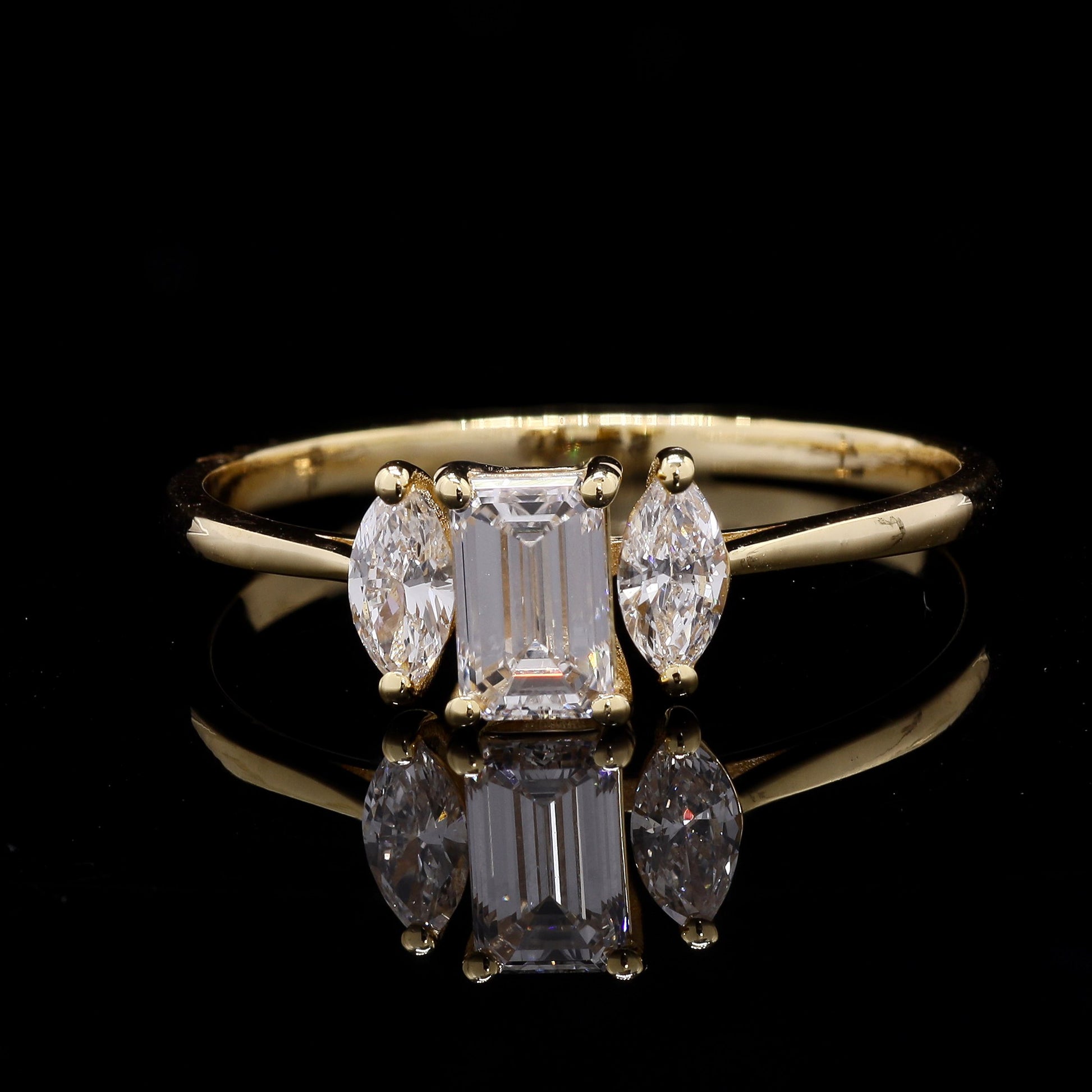 14k Gold Emerald Cut Labgrown Diamond Ring with Marquise Side Stones
